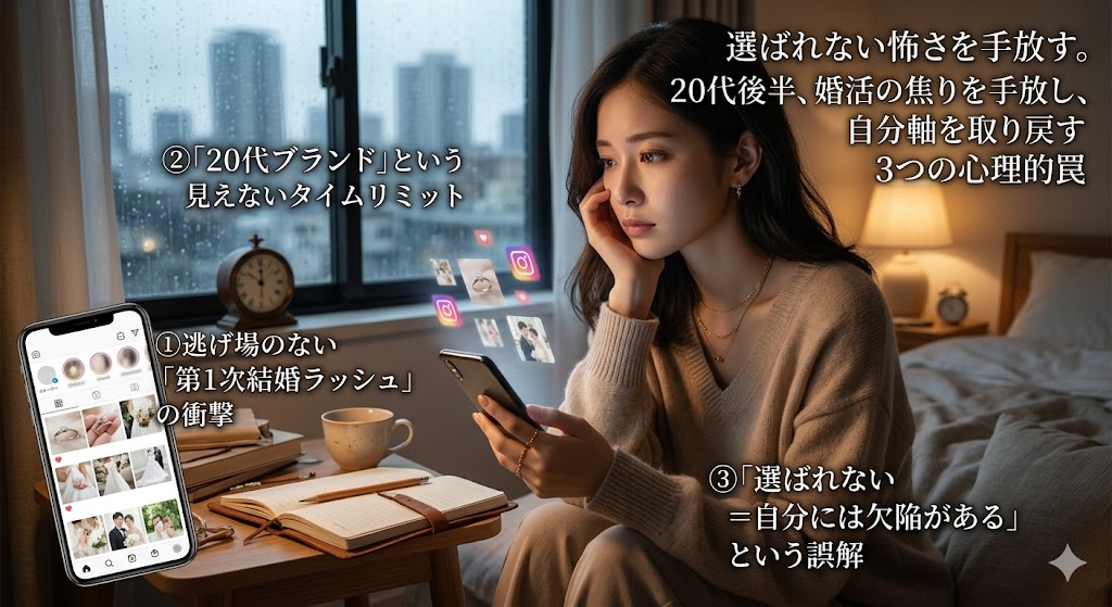 この記事では、婚活市場の「選ばれない恐怖」から抜け出し、自分軸を取り戻すための3つの処方箋をお伝えします。